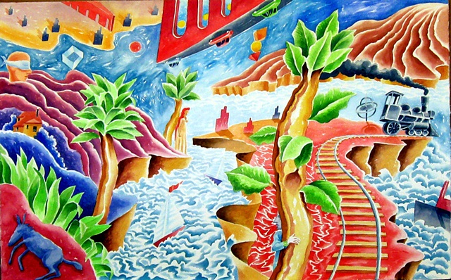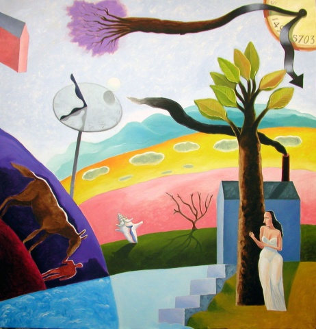 One painting is only a fragment of my life's history, an accumulation of many smaller magical ideas and events and experiences that ultimately express my inner most thoughts. With these figures, some allegorical, some mythological, and others ordinary, I am expressing exciting magical images.